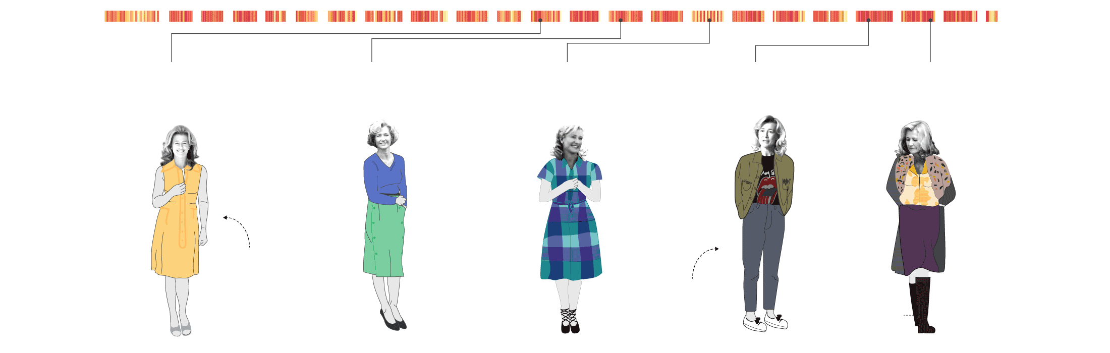El análisis de los subtítulos permite ver cómo cada protagonista tiene su propia constelación de personajes secundarios. Alrededor de los seis miembros de la familia se ven las caras de las subtramas: es el caso de Marta, Juana, Deborah (las parejas de Toni) o Valentina, la inseparable amiga de Herminia en los comienzos de la serie.