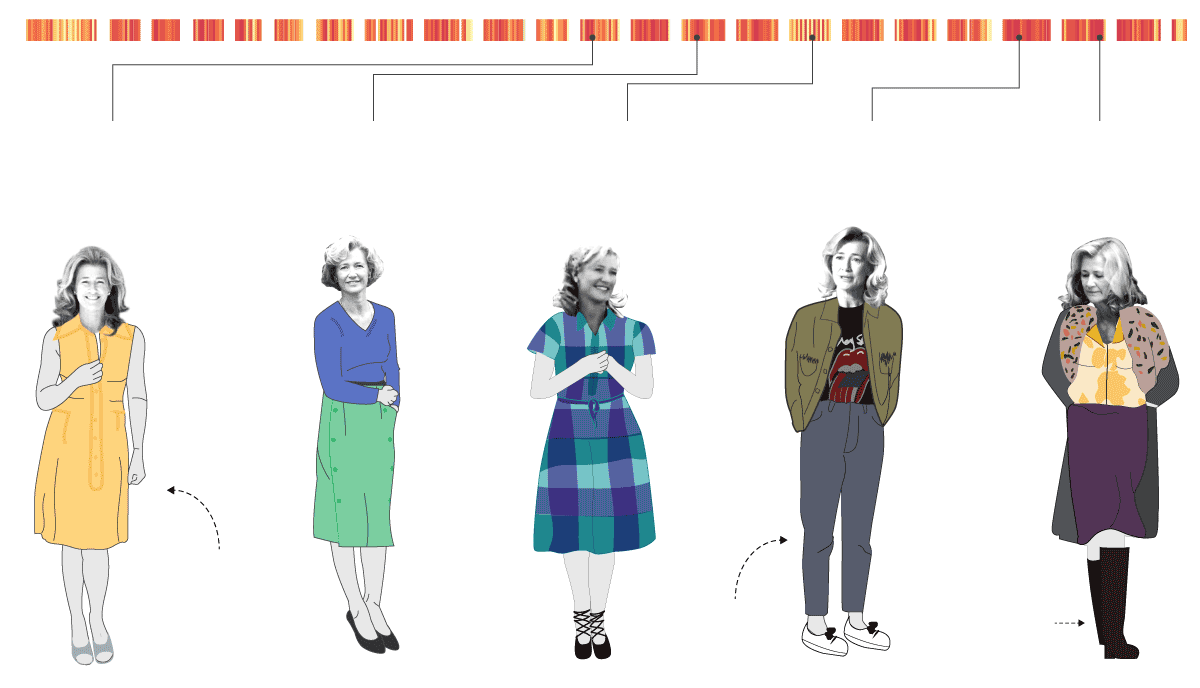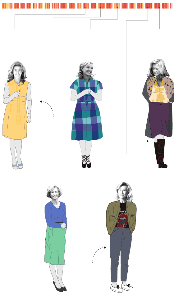 El momento más transgresor sucede quizás justo cuando decide divorciarse de Antonio, en la vigésima temporada. De la mano de Fabiola, una cantante de orquesta, y tras conocer a Max, se enfunda una camiseta de los Rolling Stones, pantalones pitillo y zapatillas deportivas. Es la Mercedes que quiere dejar atrás a la esposa y madre de familia de su vida anterior.