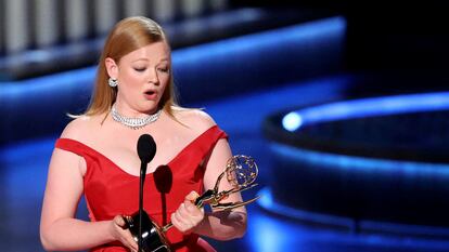 En galardones no hubo demasiadas sorpresas y todo siguió el guion que poco a poco va marcando la temporada de premios. Succession (HBO), ganadora como mejor serie de drama, triunfó con seis premios (de un total de 27 nominaciones). El primero fue para Matthew Macfadyen, mejor actor de reparto: “Gracias a mi esposa de la pantalla, Sarah Snook, y mi otra esposa, Nicholas Braun”, bromeaba sobre sus dos principales apoyos dramáticos en la serie. “Actuar con vosotros es una de las mejores cosas que me ha pasado en toda mi vida”. El segundo fue para Kieran Culkin por bordar su papel del insoportable Roman Roy: “Gracias a mi madre por darme la vida y mi niñez, que fue estupenda”, afirmaba emocionado, tirando la chaqueta al escenario, nervioso y acalorado, además de bromista con su esposa, Jazz Charton, sentada entre el público, a la que le dio las gracias por sus dos hijas: “Jazz, quiero tener más. Dijiste que a lo mejor. Te quiero mucho”.