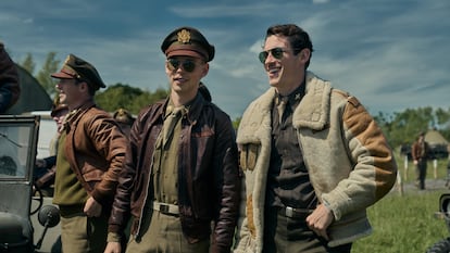 Los actores Austin Butler y Callum Turner llevan la voz cantante del nutrido reparto. Ellos interpretan a dos de los hombres reales cuya historia refleja la serie, Gale Cleven y John Egan. A diferencia de otros combatientes, ellos son amigos desde hace años, y su relación sirve de guía al espectador por las misiones que deben acometer. “Siempre me ha fascinado e intrigado este periodo y yo era un gran fan de Hermanos de sangre y The Pacific”, dice Austin Butler en una entrevista por videollamada. “Cuando me llegó la oportunidad, ni me lo pensé”, cuenta el actor, nominado al Oscar en 2023 por Elvis. Callum Turner, sentado a su lado, describe como “un honor haber podido interpretar a gente que cambió el rumbo de la guerra y ayudó a salvar el mundo”. “Recuerdo que cuando tenía 22 años y empecé con mi agente, siempre decíamos que teníamos que buscar algo como Hermanos de sangre. Muchos actores jóvenes empezaron ahí, Tom Hardy, Michael Fassbender, Andrew Scott…”, continúa.
