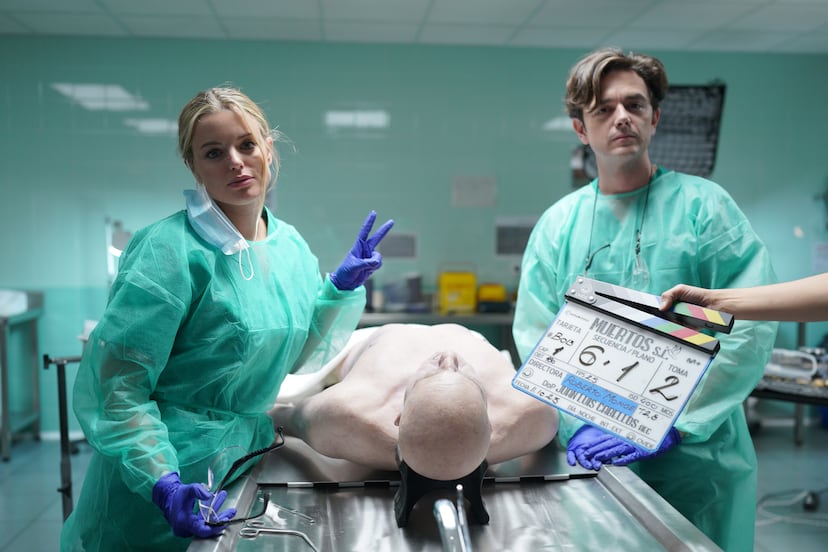 Muertos S.L. es la nueva comedia creada por Alberto y Laura Caballero junto a Daniel Deorador, Julián Sastre, Nando Abad y Araceli Álvarez de Sotomayor. Los ocho capítulos de su primera temporada se estrenan en Movistar Plus+ el 4 de abril mientras que su segunda tanda de episodios termina de rodarse estos días. En la nave de un polígono industrial de Navalcarnero (Madrid) han recreado una funeraria con todo lujo de detalles. Tanto que algunos miembros del equipo se santiguaban al entrar los primeros días. La recepción conecta con varias salas para velatorios, una cafetería y una sala multiconfesional. Dos pisos por debajo están las oficinas de la funeraria, el despacho del director (ahora, directora), las cámaras frigoríficas, el horno crematorio y la sala de tanatopraxia. Todo está equipado con material real. Los guionistas se documentaron a fondo visitando tanatorios para tomar nota sobre un trabajo muy poco conocido. Un tanatopractor les ha ayudado a con el equipamiento y a colocar y aprender el manejo del material, y estuvo presente en el plató cada vez que en la primera temporada rodaban escenas en la sala de tanatopraxia.