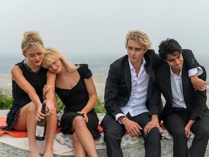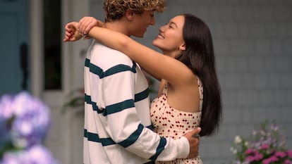 No soy ajena al placer culpable. Qué gozo los blockbusters inanes, qué risa las comedias involuntarias, los romances sexistas y por supuesto qué delicia cualquier ficción que transcurra en un instituto… El verano en que me enamoré es un poco de todas esas cosas, pero no es del todo un placer culpable a pesar de tener los reconfortantes lugares comunes del género: es repetitiva, se le ven a leguas los trucos y aprieta a fondo los botones facilones (subrayados en amarillo por temazos de Taylor Swift y Olivia Rodrigo para las hijas y, de U2 o Smashing Pumpkins para las madres). La serie cumple con el factor “cringe” de las cosas que nos gustan pero nos dan vergüenza, es un jolgorio de hermosos pijos limpiándose en plan sexy la frutita de la boca, retirándose mechones de pelo, tocándose, levemente siempre, las clavículas. Por supuesto, hay un trillón de mohines.