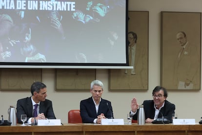 El primer episodio se ha proyectado este jueves por la tarde en la Sala Constitucional del Congreso, con la presencia de sus creadores, varios diputados actuales, la presidenta de la cámara baja, Francina Armengol, y, sobre todo, el presidente del Gobierno, Pedro Sánchez, cuyo discurso ha sido meticulosamente escrutado para encontrar ecos de respuesta a la condena, horas antes, del Tribunal Supremo al fiscal general del Estado a dos años de inhabilitación por revelación de secretos. Y sí, al hablar del medio siglo desde el fallecimiento de Franco y al reflexionar sobre los 44 años de la frustrada sublevación militar, ha enhebrado un hilo hasta los acontecimientos de hoy: “La democracia es un privilegio a defender cada día de nostalgias infundadas, intereses económicos, de ataques que van cambiando su forma”, para después asegurar su “firme deseo de neutralizar esa amenaza, de defender la soberanía popular y la democracia frente a aquellos que se creen con la prerrogativa de tutelarla o de amordazarla”.