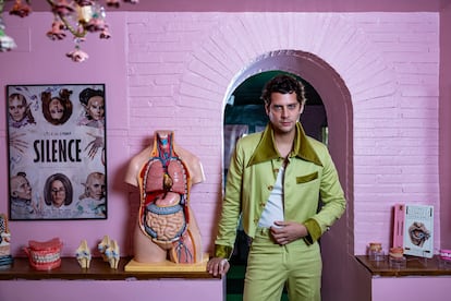 Eduardo Casanova (Madrid, 34 años) se disculpa desde la entrada. Le habría gustado, dice, tener algo más ordenada y ambientada su casa-oficina-museo-decorado, donde recibe a EL PAÍS en una mañana de noviembre. Aunque lleva año y medio instalado con su pareja en este pequeño adosado a las afueras de Madrid, su actividad imparable apenas le deja tiempo. Cuesta creerlo porque su universo, tan reconocible, lo invade todo.
