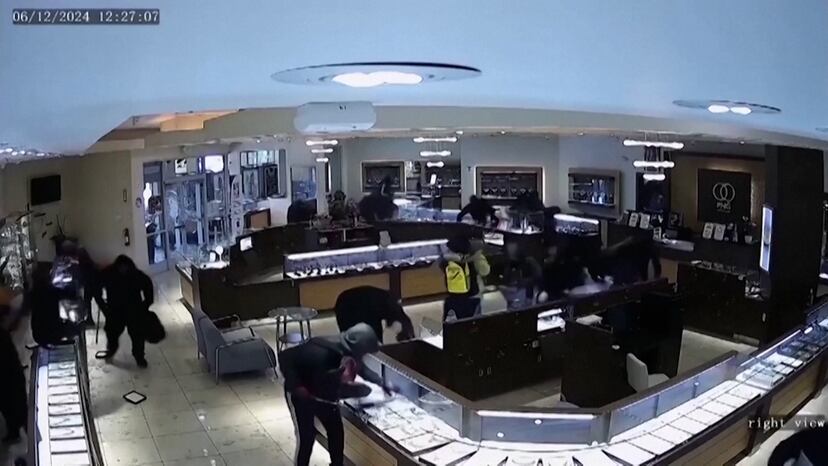 Un grupo de veinte personas robaron una tienda de joyería en Sunnyvale, California, el pasado miércoles, rompiendo con mazas aparadores y saqueando la propiedad. Los involucrados huyeron en múltiples vehículos. La policía estatal ha difundido el video del asalto este lunes en espera de que el público pueda proporcionar más información sobre los sospechosos.