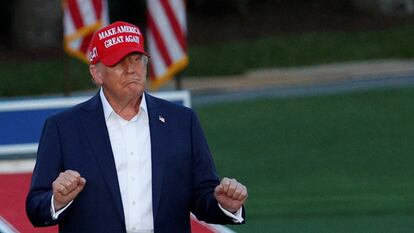 Trump ha lanzado este martes un reto que ha sonado un poco a cuando Elon Musk retó a Mark Zuckerberg a una pelea en una jaula. “Desafío oficialmente al corrupto Joe a un partido de golf de 18 hoyos aquí mismo”, ha dicho. “Será uno de los eventos deportivos más vistos en la historia puede ser más grande que la Ryder Cup o incluso el Masters y le voy a dar Joe Biden 10 golpes de ventaja (...) y si gana le daré a la organización benéfica de su elección, a cualquier organización benéfica que quiera, un millón de dólares. Os apuesto a que no acepta la oferta porque lo suyo es todo palabrería”, ha continuado.