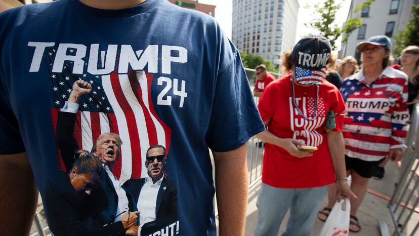 En el Van Andel Arena de Grand Rapids, Michigan, los partidarios de Donald Trump se reunieron en el primer mitin público tras el atentado contra su vida el pasado sábado 13 de julio. El acto, marcado por el aumento de la seguridad, también puso de manifiesto las distintivas elecciones de moda de sus partidarios, que llegaron en masa vistiendo atuendos alusivos a Trump.