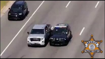 Una oficial de policía de Míchigan salta desde su patrulla a un auto en movimiento para ayudar al conductor