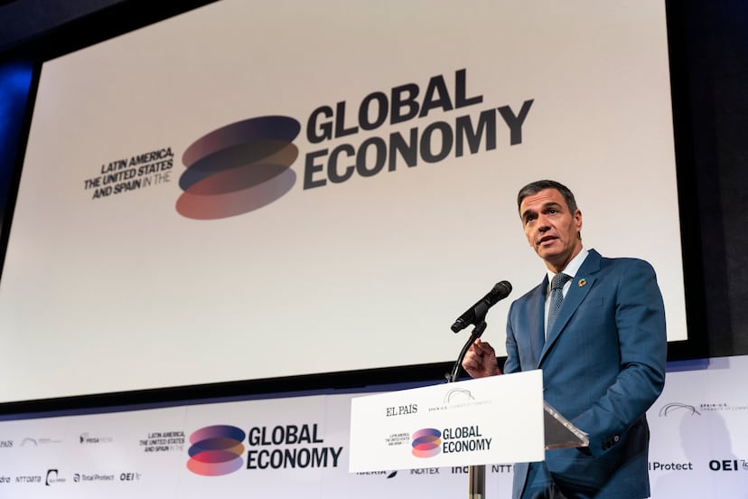 Pedro Sánchez rebosa optimismo económico en su séptimo viaje a Nueva York como presidente para participar en la asamblea general de la ONU. Durante su intervención en el foro Latinoamérica, EEUU y España en la economía global, organizado por EL PAÍS y la Cámara de Comercio España-Estados Unidos y patrocinado por DLA Piper, Iberia, Inditex, Indra, NTT Data y Total Protect en colaboración con la Organización de Estados Iberoamericanos (OEI), Sánchez ha bromeado incluso con el hecho de que en España nadie habla de los datos positivos y a veces tampoco los dirigentes lo hacen cuando viajan al extranjero, así que él ha querido ser claro: “España vive uno de los mejores momentos de las últimas décadas, esto hay que decirlo también fuera”.