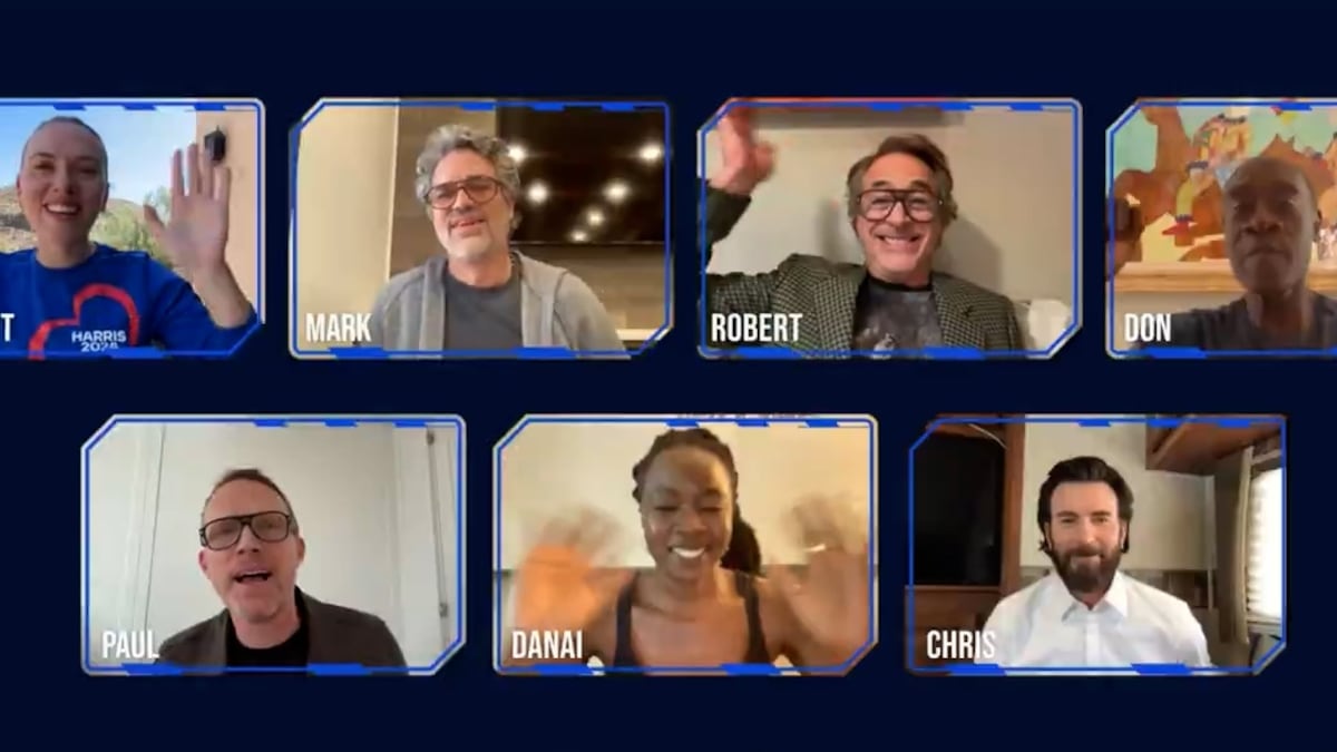 Actores conocidos por su participación en las cintas de Marvel dieron un mensaje de apoyo a Kamala Harris ante las elecciones en Estados Unidos. En la videollamada participaron Scarlett Johansson (Natasha Romanoff), Robert Downey Jr. (Tony Stark), Don Cheadle (James Rhodes), Chris Evans (Steve Rogers), Mark Ruffalo (Bruce Banner), Paul Bettany (Vision) y Danai Guirra (General Okoye).