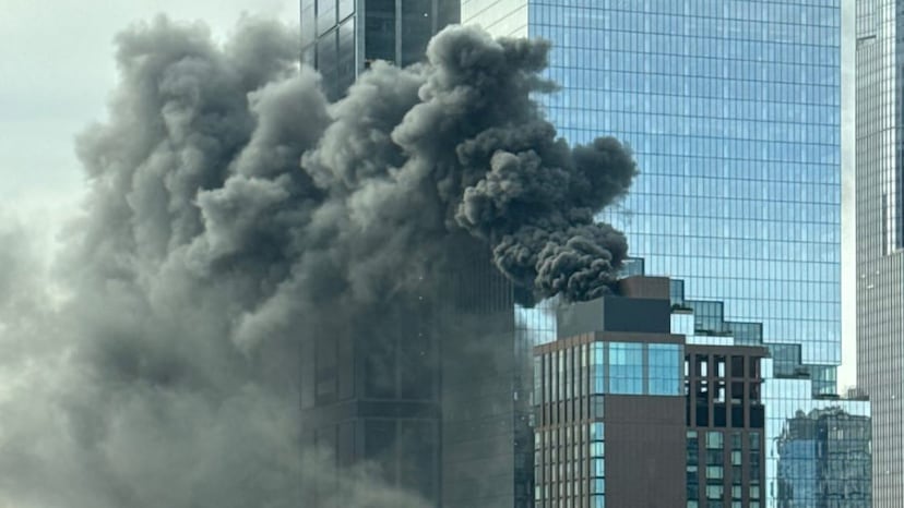 Un incendio en un rascacielos llena de humo el cielo de Manhattan