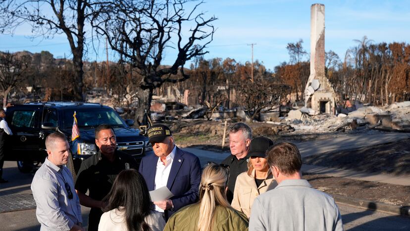 El mandatario recorrió únicamente la comunidad de Pacific Palisades, un barrio afluente cercano a la costa del Pacífico. “Ha habido una gran afectación a los bienes raíces”, aseguró el mandatario. Caminó por la zona portando una gorra negra con grandes letras doradas de Make America Great Again. Se entrevistó brevemente con ocho víctimas que lo han perdido todo. El Palisades destruyó más de 6.800 residencias y dañó otras mil.