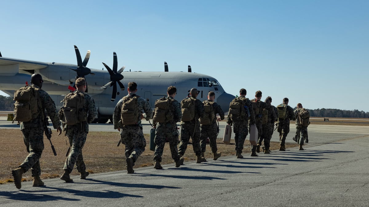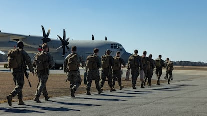 Un video del Departamento de Defensa de Estados Unidos muestra a soldados subiendo a un avión en la Estación Aérea del Cuerpo de Marines Cherry Point, Carolina del Norte.