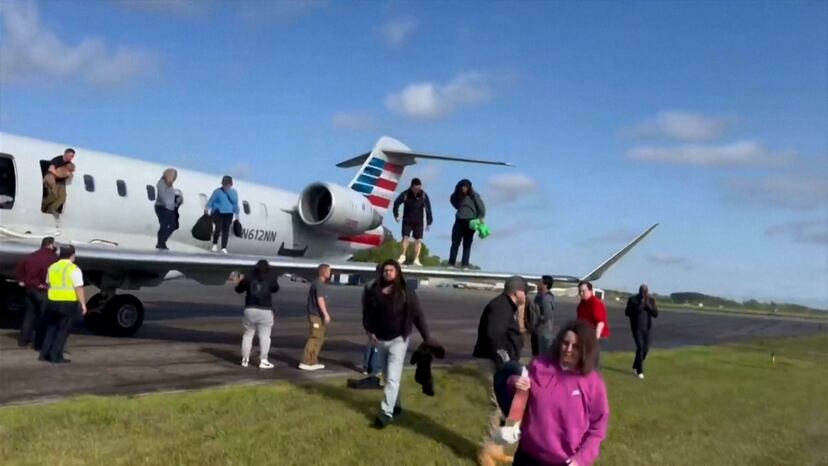 Pasajeros salen por las alas de un avión tras una evacuación de emergencia en Georgia