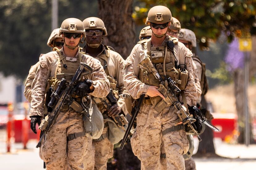 Los 200 infantes de marina y más de 2.000 guardias nacionales desplegados en las calles han sido movilizados con la tarea de proteger la propiedad y el personal federal, lo que se traduce en que acompañarán a los agentes del ICE en las redadas, según han informado las autoridades.