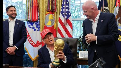 Por su parte, Infantino le dio a Trump el primer boleto para la final del próximo año, y afirmó: “Este evento será absolutamente fantástico. El evento más grande de todos los tiempos. Y todo comenzará aquí en Washington, D. C. en el Kennedy Center, o el Trump Kennedy Center”.