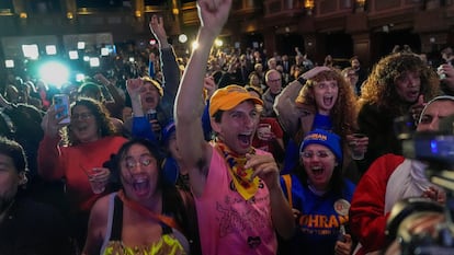 Glenn Cantave, de 32 años y neoyorquino, iba dando vueltas por el bar chocando los cinco con la gente. Aunque se mostraba “eufórico”, en sus propias palabras, era también pragmático: sabe que este es solo el principio de lo que será una larga lucha entre Mamdani y el presidente Trump. “Estoy emocionado por este momento, por tener a alguien que no está respaldado por multimillonarios, que se basa en valores. Si nos fijamos en lo que está haciendo Trump, enviando a agentes federales y de inmigración a diferentes ciudades de todo el país, es algo que está haciendo según sus propios términos. Pero creo que Zohran es lo suficientemente hábil como para manejar esa situación”, opina.