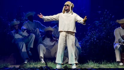 Frente a la montaña que se levanta en la parte posterior hay una gran pantalla, en la que en la hora previa al concierto se proyectan una serie de mensajes a cerca de Puerto Rico, su historia, su cultura y su resiliencia. “Puerto Rico es un territorio no incorporado de Estados Unidos, pero tiene bandera, cultura e identidad propia”, reza uno de ellos; “Puerto Rico tiene dos géneros musicales autóctonos: bomba y plena”, añade otro. Estos dos ritmos tradicionales son elementos principales de los conciertos, como lo fueron del disco. Aunque Bad Bunny ha advertido que cada noche será diferente a la anterior, las tres primeras funciones arrancaron al son de la bomba, un estilo musical creado en la isla por los africanos esclavizados durante la colonización española.