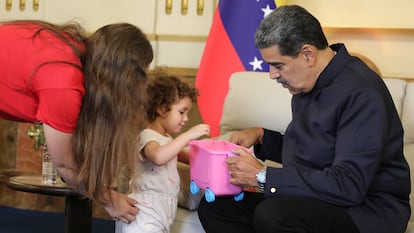 Eso contrasta con la imagen de este miércoles. Maikelys no llegó sola a Caracas, sino como parte de un grupo de más de 220 migrantes venezolanos deportados desde Estados Unidos, en uno de esos vuelos que antes Maduro se resistía a recibir, pero que ha vuelto a aceptar desde la llegada de Trump. El presidente venezolano incluso agradeció al republicano la devolución de la pequeña, lo que calificó como “un acto profundamente humano”, y dejó el camino abierto para posibles negociaciones con la Administración Trump. “Ha habido y habrá diferencias, pero es posible, con la bendición de Dios, avanzar y resolver muchos temas”, sostuvo. Maduro también aseguró que aspira a que “muy pronto” puedan “rescatar” de El Salvador al padre de Maikelys y a los 253 venezolanos que se mantienen en la mega cárcel del presidente Nayib Bukele desde marzo.