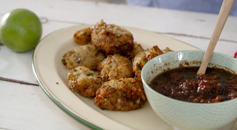 Forma bolitas con dos cucharas y fríe en aceite caliente.