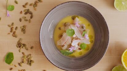 Este ceviche con mandarina es una deliciosa combinación de ingredientes frescos y sabores intensos, ideal para quienes buscan un aperitivo ligero. Sin duda, este platillo captura la esencia del mar con el toque cítrico de la mandarina y la lima, mientras que la jícama, las pepitas y las flores de ajo le añaden una textura y un sabor únicos.