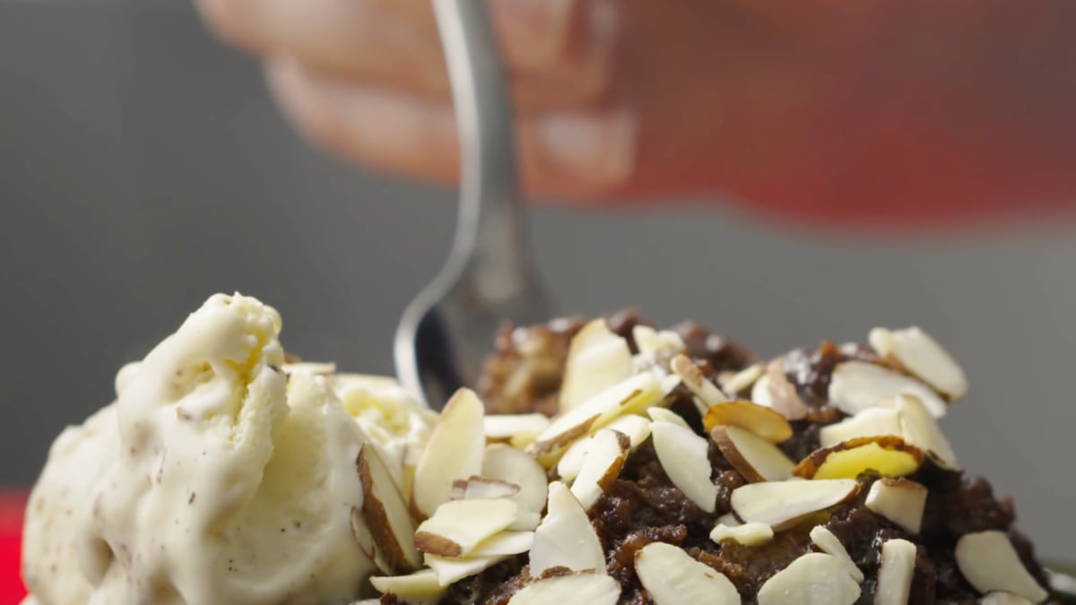 Corta, decora con almendras y helado y ¡a disfrutar!