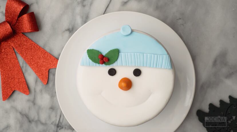 Celebra esta Navidad con un pastel de muñeco de nieve, hecho con chocolate mexicano, canela y fondant de malvaviscos.