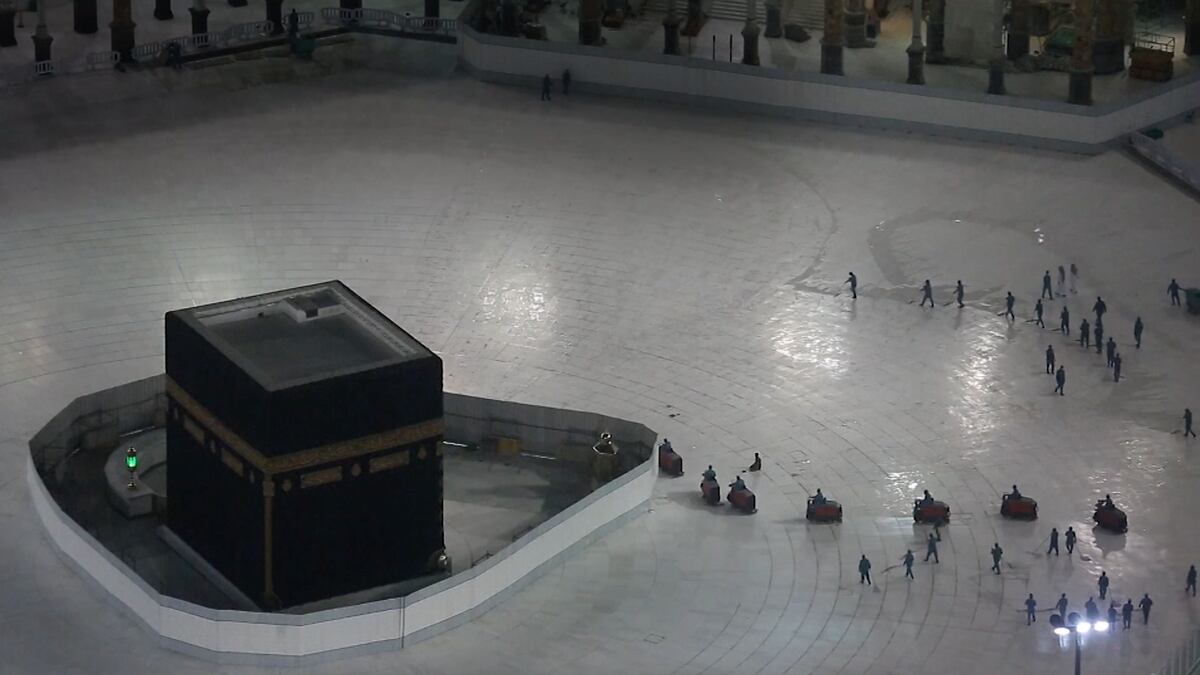 El temor por la expansión del coronavirus por todo el planeta y las medidas extremas de los países de todo el mundo para contener la infección están dejando imágenes tan insólitas como la que se pudo ver en La Meca (Arabia Saudí), en la mezquita de Masjid al-Haram, el pasado viernes. Muy lejos de sus estampa habitual, en la que se suelen observar mares de personas formando círculos, el recinto sagrado se podía ver absolutamente vacío, con tan solo algunos operarios caminando por las baldosas que rodean a la Kaaba, el santuario más sagrado del islam. De acuerdo con la tradición, este cubo fue construido por Adán y luego reconstruido por Abraham. El santuario que se extiende en torno a la Kaaba abarca una superficie de 250 kilómetros cuadrados en los que existen prohibiciones como talar, cazar y pelear.