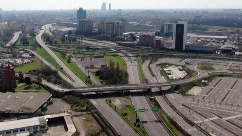 Unas imágenes grabadas con un dron este domingo 15 de marzo muestran una imagen inusual, otra más de las que está dejando en Europa la crisis del coronavirus. Se trata de la autopista A-4 de Italia, a su paso por la localidad de Baranzate. Este municipio se encuentra a pocos kilómetros de Milán, y el tramo mostrado a vista de pájaro y sus conexiones con la A-8, que también aparecen, son normalmente de los más transitados de la región de Lombardía, según explica la agencia Reuters. Este domingo, sin embargo, sus carriles aparecen prácticamente desiertos: solo los transitan unos pocos vehículos solitarios.