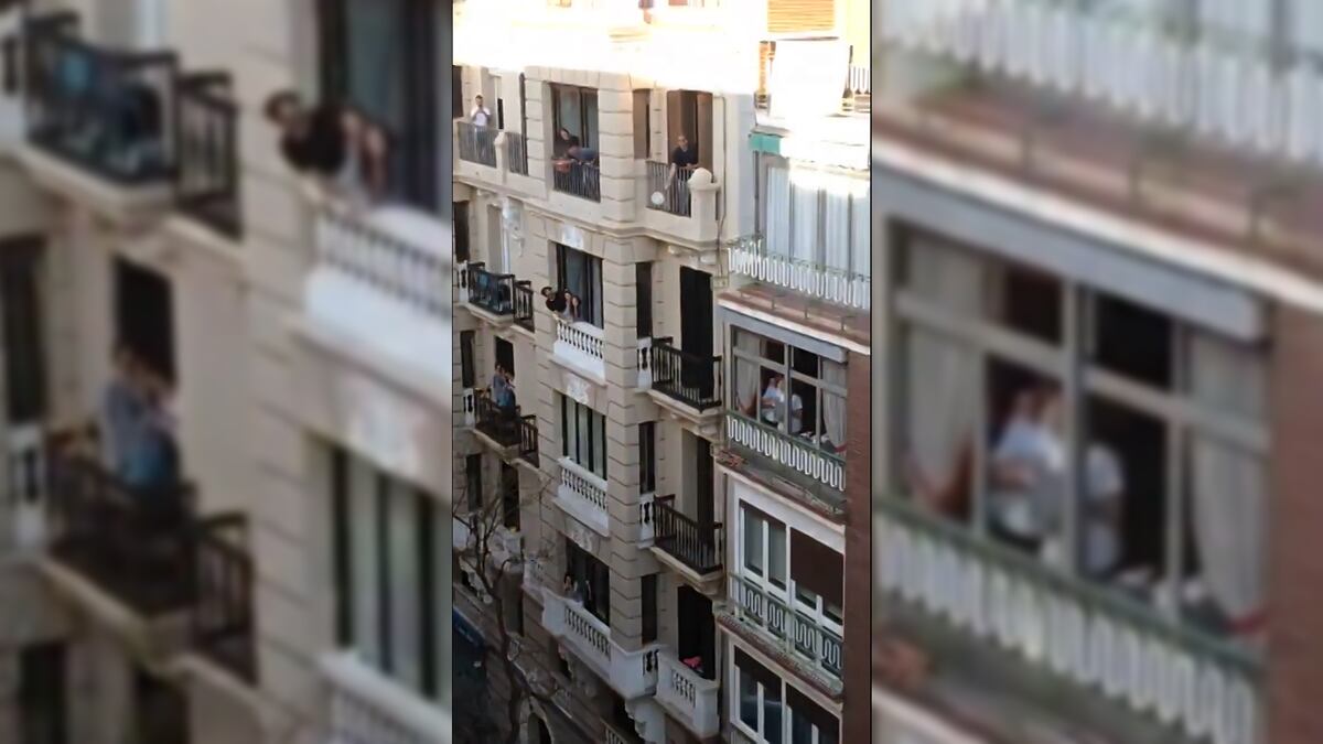 El momento fue protagonizado el pasado sábado por dos vecinos de la calle Pintor Rosales, en el barrio madrileño de Argüelles. Confinados en casa, como recomienda el Gobierno en esta situación excepcional marcada por la crisis del coronavirus, buscaron una forma de hacer más amena la cuarentena y decidieron hacer un breve ‘peloteo’ desde sus balcones, con decenas de vecinos expectantes que les vitorearon de forma unánime. La originalidad y el sentido del humor se premian durante el momento de reclusión que ocasionan las medidas para combatir el Covid-19.