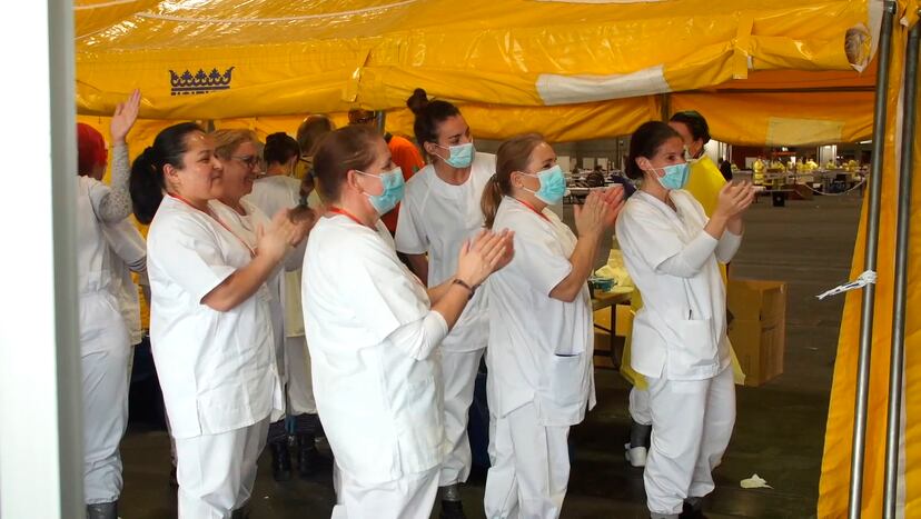 El personal sanitario de España celebra las altas médicas de los enfermos de Covid-19