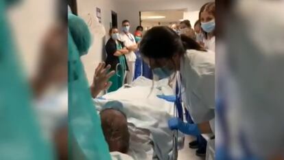 Las historias de superación del coronavirus siguen repartiéndose por toda España. El personal sanitario del Hospital Vall d’Hebron Barcelona lucha sin descanso por sacar adelante a los enfermos en las UCI. Este domingo, un paciente se ha emocionado con todo el equipo médico que le ha estado cuidando estos días y en especial con su doctora. Aplausos sentidos para celebrar el primer alta de la unidad de cuidados intensivos.