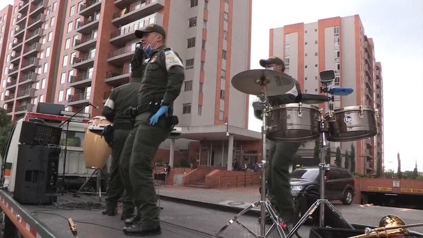 La Policía colombiana anima la cuarentena con música en directo