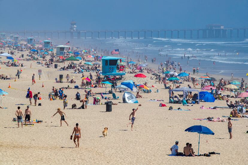 Varias playas del condado de Orange, al sureste de California, lucieron abarrotadas con más de 40.000 bañistas este fin de semana, aunque las recomendaciones de confinamiento continúan en vigor en este estado y otras partes de EE UU.