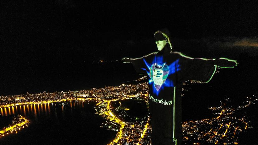 El Cristo Redentor de Río de Janeiro ha lucido este domingo una mascarilla proyectada para sensibilizar a la población brasileña sobre la importancia de su uso. El principal símbolo turístico del país sudamericano fue cerrado al público a mediados de marzo, pero desde entonces, su figura ha servido para exhibir mensajes de solidaridad al personal sanitario y al resto de países afectados por la covid-19.