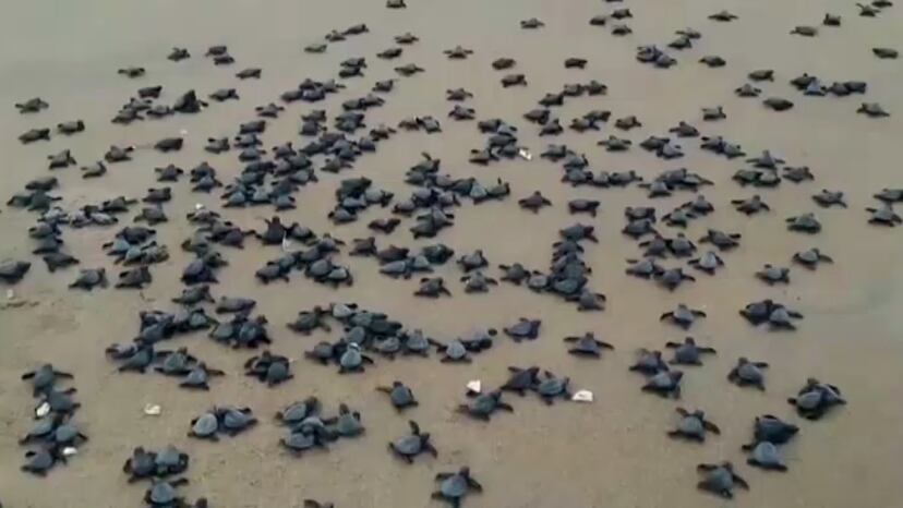 Las tortugas golfa, la especie más popular al sur de la India, se han adueñado de una playa. Miles de ellas han llegado para enterrar sus nidos como hacen cada primavera. Sin embargo, este año ha sido distinto. Lo habitual es que acudan a poner sus huevos durante la noche, cuando no hay nadie. Pero ahora, como la playa está desierta, lo han hecho durante el día y han dejado una imagen llamativa en la arena.