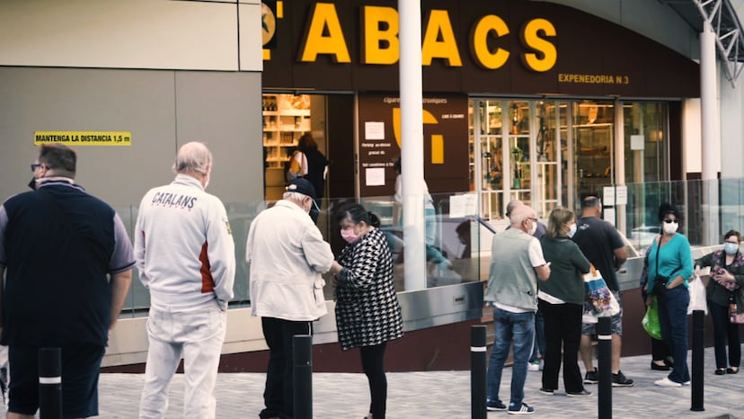 “¡Eh, señor, a la cola!”, se escucha en francés al final de la avenida Catalunya. Detrás, un panel en el que se lee en castellano “Mantengan la distancia de seguridad”. En apenas 700 metros confluyen hasta tres estancos de los que no paran de entrar y salir ciudadanos cargados de bolsas con cartones. A las tiendas de tabaco se suman en la misma acera un par de supermercados, una mercería, varias perfumerías y un local de recuerdos de merchandising español, como navajas o tirachinas con la bandera roja y gualda, cuya música de Manolo Escobar se mezcla con los carteles escritos en francés, como el de “Office de Turisme”. Estos negocios, entre los que se encuentra la tienda de ropa de Essadek, aprovechan el tirón de los estancos para dar salida a su género. Pero la imagen de Le Perthus ha cambiado en los últimos días, no solo por las mascarillas, sino porque la Policía Local de La Jonquera y los Mossos d’Esquadra han tenido que acordonar la zona para que los franceses guarden la fila respetando las medidas de seguridad y la distancia de dos metros.