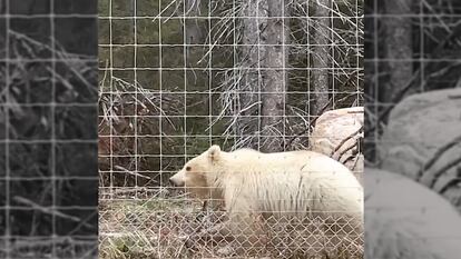 La rara aparición de oso grizzly blanco en las Montañas Rocosas de Canadá