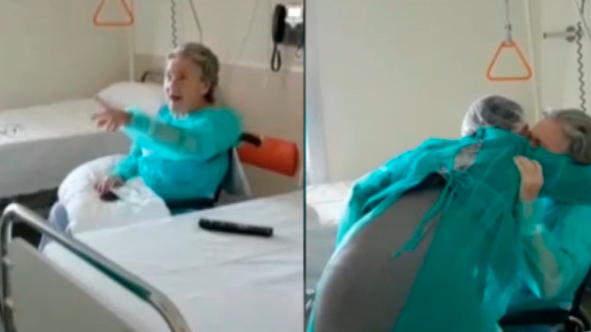 El abrazo entre una hija y su madre enferma de coronavirus, el día de su 80 años cumpleaños