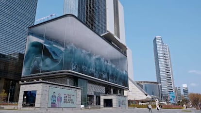 La agencia creativa surcoreana D’strict ha creado una ola hiperrealista atrapada dentro de un edificio del distrito de Gangnam-gu, al sureste de Seúl (Corea del Sur) famoso por Gangnam style, la canción viral del rapero Psy, que dio la vuelta al mundo. La instalación se proyecta durante un minuto de cada hora en una pantalla led de 80 metros de ancho por 20 metros de alto que cubre la fachada del SMTown COEX, el centro comercial más grande de la ciudad. El director de desarrollo comercial de D’strict, Jun Lee, dijo en una entrevista a la cadena CNN que la intención de este proyecto era crear una “experiencia abrumadora” basada en la “belleza y el dinamismo de las olas”.