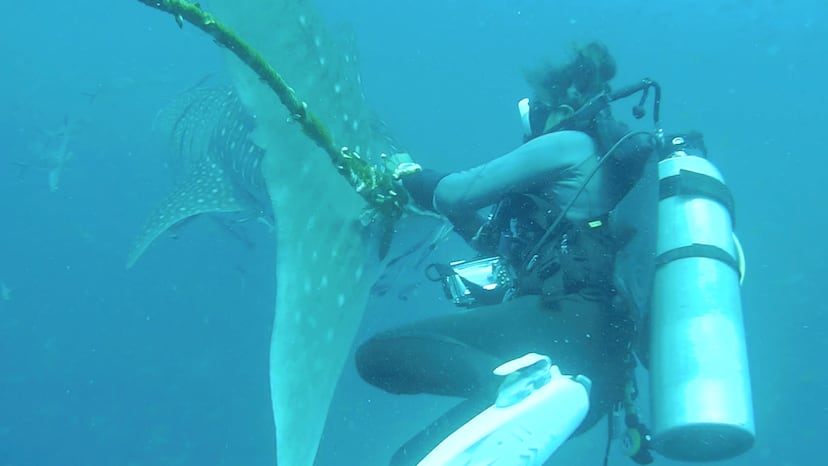 Tailandia busca un tiburón ballena que nada enredado en una cuerda