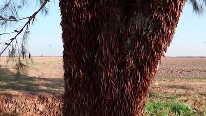 Las provincias argentinas de Corrientes y Entre Ríos, al norte del país, sufren esta semana una plaga de langostas que se puede mover hasta 150 kilómetros en un día y que, según informaron este martes autoridades locales, “su control es tan complejo como necesario”, porque puede dañar las cosechas de las zonas por donde va pasando. En el vídeo de arriba, grabado por varios usuarios de redes sociales, se puede observar el avance de la impresionante nube de insectos por el norte de Argentina rumbo a Brasil.