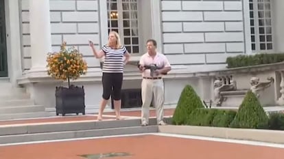 La imagen que acompaña esta información se ha visto en informativos de todo el mundo: un matrimonio de abogados, pertrechados por un fusil de asalto y una pistola, se exhibe frente a los manifestantes de una concentración antirracista que pasa frente a su mansión, en San Luis (Misuri, Estados Unidos). El vídeo muestra a Mark McCloskey, de 63 años, vestido con un polo rosa y sosteniendo un arma de fuego de asalto, y a su mujer Patricia, de 61, apuntando con una pistola al rostro de los activistas, a los que acusa de estar pisando propiedad privada.