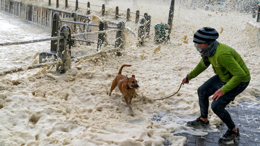 Las fuertes lluvias y los vientos huracanados han acercado esta espuma marina a las costas de la segunda ciudad más poblada de Sudáfrica