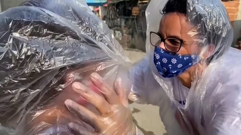El equipamiento que Silva entrega a sus alumnos consiste en ropa protectora, mascarillas de tela y unos dulces, que le permiten poder abrazar de forma segura a los estudiantes e infundirles esperanza en que pronto volverá la normalidad a las calles de Río de Janeiro. Brasil registró 59.961 casos adicionales de covid-19 este jueves 23 de julio, el segundo mayor salto diario después del récord del miércoles de esa misma semana, lo que eleva el total de casos confirmados a casi 2,3 millones y lo mantiene como el peor brote del mundo fuera de Estados Unidos.