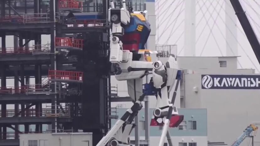 El robot de 18 metros de altura y 25 toneladas de Gundam da sus primeros pasos