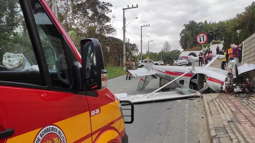 Sin potencia suficiente en el motor como para mantenerse en el aire, una avioneta con dos tripulantes a bordo se estrelló el pasado sábado en mitad de la calle en la ciudad de Guabiruba, al sur de Brasil, mientras trataba de realizar un aterrizaje de emergencia. Pese a la violencia del accidente, tanto el comandante, de 35 años como el pasajero, de 33, pudieron salir por sus propios medios de la aeronave, que quedó destrozada contra el suelo. Ambos resultaron heridos y fueron trasladados de urgencia al hospital tras ser socorridos por una unidad del cuerpo de bomberos militar de Santa Catarina.