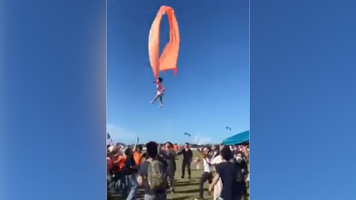 Una niña de tres años sale volando enredada a una cometa por el intenso viento