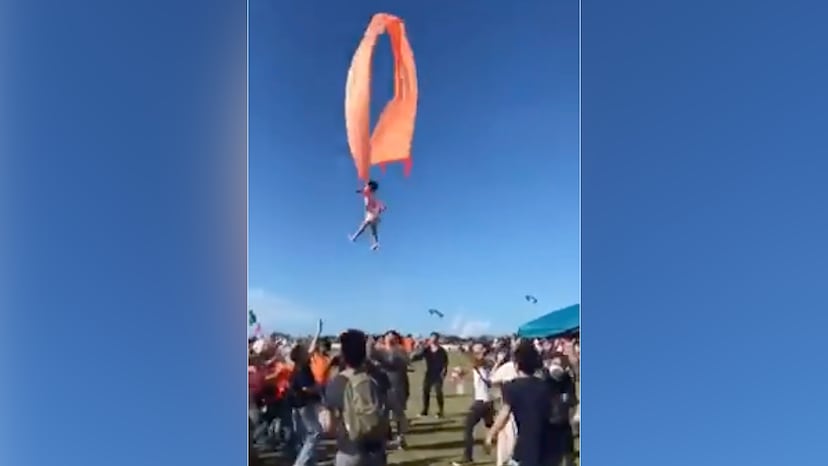 Una niña de tres años sale volando enredada a una cometa por el intenso viento