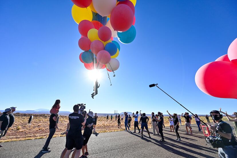 Segundos antes de alzar vuelo, David Blaine se despidió de su hija de nueve años con un beso. El ilusionista estadounidense dejó caer pequeñas pesas para acelerar su ascenso hasta rozar los 9.000 metros, la altura en la que viajan la mayoría de las aerolíneas comerciales. A mitad del vuelo se colocó una máscara de oxígeno mientras un equipo monitoreaba sus niveles de oxígeno y temperatura corporal, ya que a esa altura se superan los 20 grados centígrados bajo cero. Blaine, de 47 años, cruzó así el desierto de Arizona en un viaje que duró 30 minutos y acabó cuando soltó los globos y se lanzó al vacío en paracaídas de vuelta a tierra.